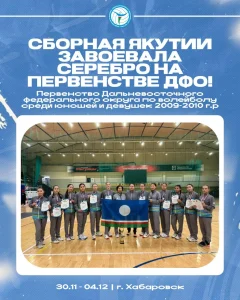 С 30 ноября по 04 декабря 2025 года в г. Хабаровске прошло Первенство Дальневосточного федерального округа по волейболу среди девушек 2009-2010 годов рождения. В соревнованиях приняли участие 8 сборных команд из Республики Саха (Якутия), Республики Бурятии, Сахалинской и Амурской областей, Забайкальского, Приморского, Хабаровского и Камчатского краев.